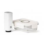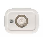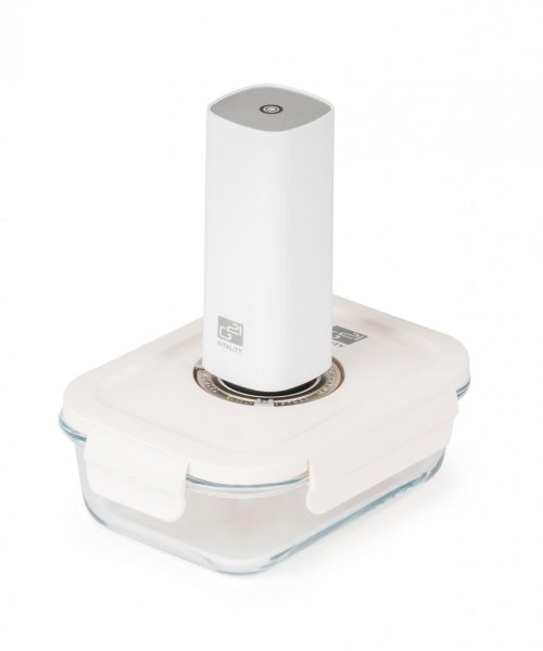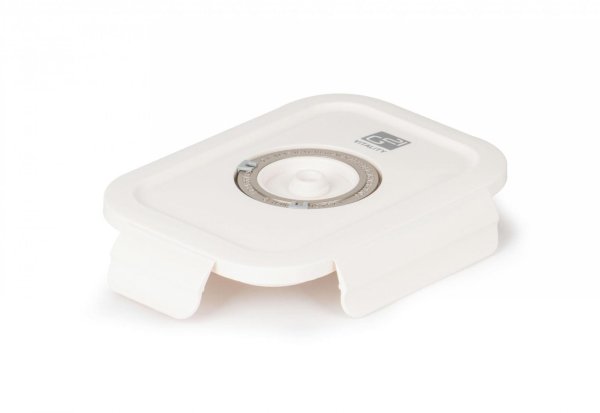 Plastové veko je vybavené vákuovacím ventilom a praktickým nastavovaním dátumu . Budete tak vedieť, kedy boli potraviny vákuované alebo do kedy sa majú spotrebovať. Ventil uprostred veka je možné jemne stlačiť pre ľahké uvoľnenie vákua.