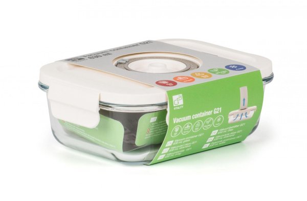 Pre pohodlné a ľahké vákuovanie čerstvých aj hotových potravín odporúčame vynikajúcu vákuovaciu dózu G21 s objemom 630 ml . Predĺži trvanlivosť potravín, zachová im čerstvosť aj plnú chuť a vôňu a predovšetkým všetky zdraviu prospešné látky. Veľkou výhodou tejto dózy je jej široké využitie – potraviny v nej po zavákuovaní môžete uložiť do chladničky, zamraziť alebo po zložení veka rovno zapekať v rúre či teplovzdušnej fritéze.