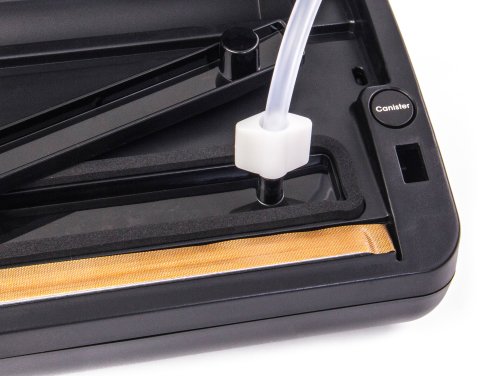 Vákuovačka G21 Nefrit odsáva vzduch nielen z vákuovacích vrecúšok alebo fólií v rolkách, ale aj z vákuovacích marinovacích dóz . Stačí napojiť hadičku na príslušný otvor vákuovacej dózy G21 (hadička je súčasťou balenia dózy) s objemom 1,4 alebo 2 l , stlačiť príslušné ovládacie tlačidlo a potraviny v dóze budú spoľahlivo zavákuované.