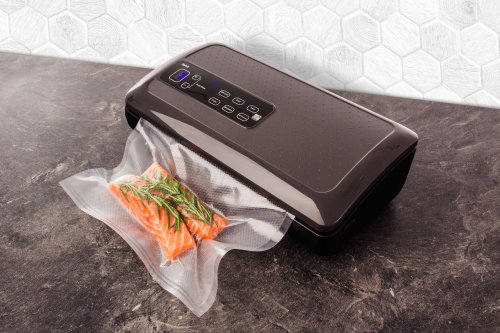 Vákuovačka so zásobníkom na fóliu a duálnou pumpou na spoľahlivé zavákuovanie potravín. Funkcia marinovania, dvojité zvary, pre fólie do šírky 28 cm .