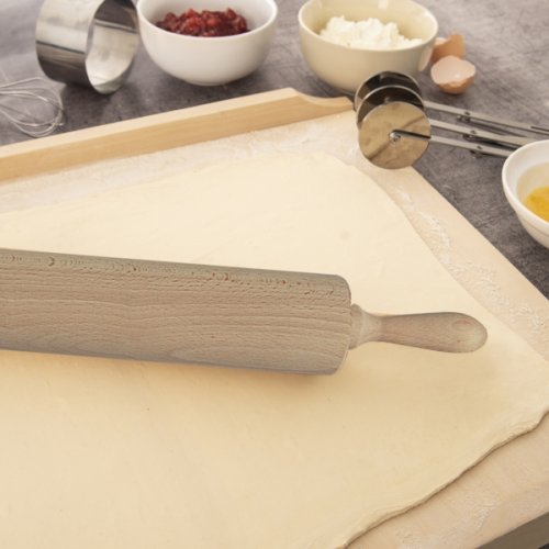 Drevený valček na váľanie rôznych druhov ciest. Rozmery 25 x 44 cm.