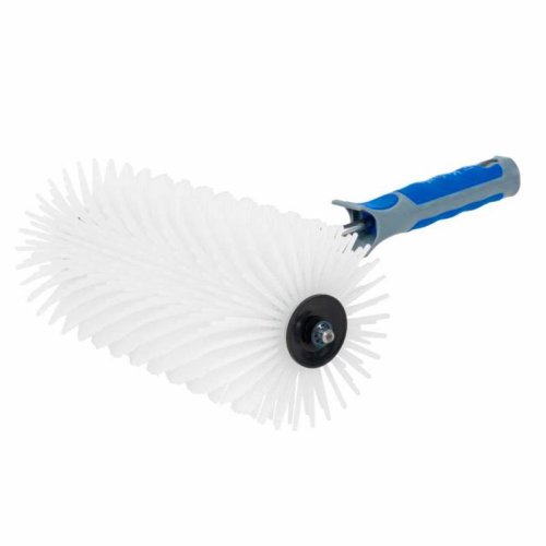 nivelačný valček plast PE - polyetylén priemer: 123 mm, výška tŕňov: 40 mm kovový držiak, plastová rukoväť s otvorom na teleskopickú tyč na odvzdušnenie samonivelačných náterov tenkých a stredných vrstiev