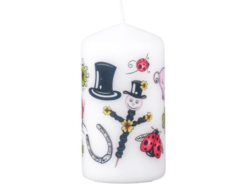 Táto originálna sviečka v tvare valca je ozdobená obľúbenými symbolmi pre šťastie, ako sú štvorlístok, podkova alebo lienka. Je skvelým darčekom pre každého, komu chcete popriať veľa šťastia – či už ide o nový začiatok, dôležitú životnú udalosť alebo len malé povzbudenie do každodenného života. Sviečka nie je len krásnou dekoráciou, ale aj milým talizmanom, ktorý poteší srdce aj domov.