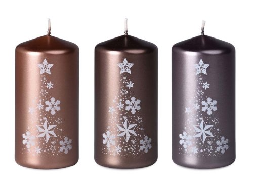 Dekoračná sviečka v tvare valca o rozmere 60×120 mm zdobená štýlovou potlačou vianočného stromčeka. Ponúka rôzne motívy z kolekcie 2021, ktoré krásne doplnia slávnostnú atmosféru Vianoc. Vhodná na aranžovanie, ako doplnok na sviatočný stôl alebo ako drobný darček. Tovar je dodávaný v mixe. Doručovaný tovar je vyberaný náhodne a nie je možné vybrať konkrétne prevedenie.