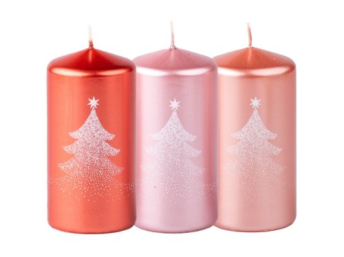 Dekoratívna sviečka valcového tvaru o rozmere 60×120 mm s potlačou motívu stromčeka. Prevedenie je dodávané v mixe designov z kolekcie 2023, jednotlivé kusy sa môžu líšiť vzhľadom na potlač.
