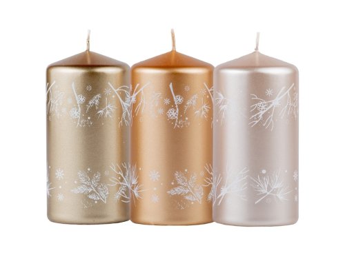 Valec sviečka o rozmere 60×120 mm s jemnou dekoratívnou potlačou vetvičky v rôznych farebných variantoch. Jednotlivé sviečky sú dodávané v mixe, motívy a odtiene sa môžu líšiť.