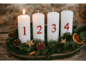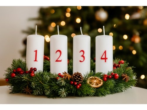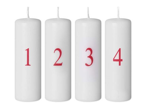 Valec advent 4ks 40x120 mm Čísla červená potlač, biela sviečka