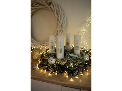 Valec advent 4ks 40x120 mm Darček s číslami strieborná potlač, biela sviečka