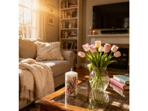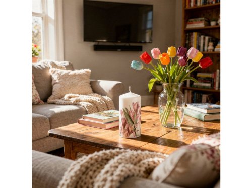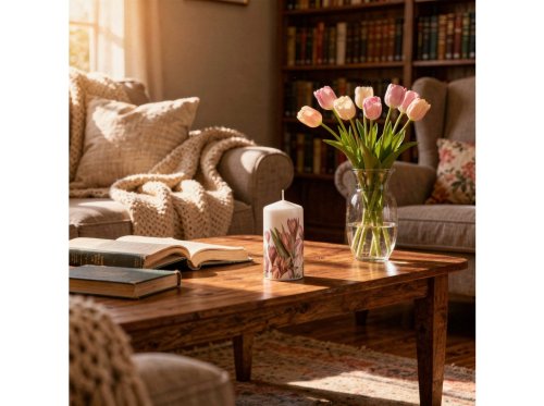 Tento sviečkový valec s motívom krokusov prinesie do vášho interiéru sviežosť a prírodnú krásu. Jej rozmery sú 60x110 mm.