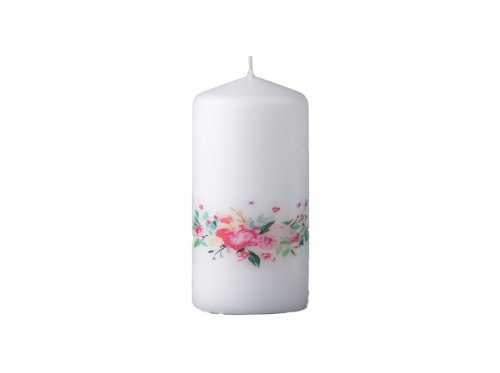 Krásna sviečka s motívom kytice, ktorá pridá vášmu priestoru sviežu a kvetinovú vôňu. Jej rozmery sú 60x120 mm.