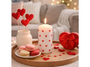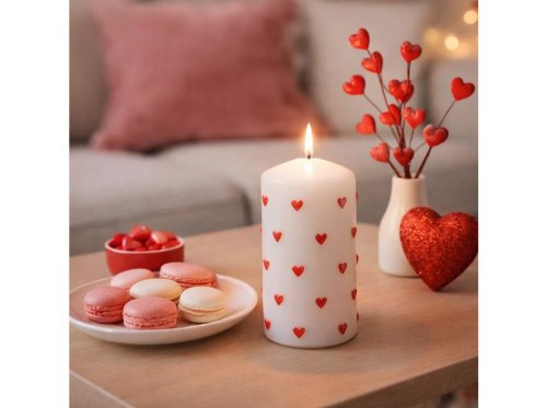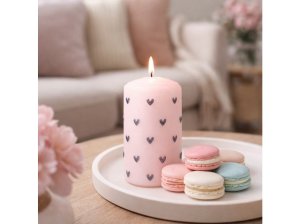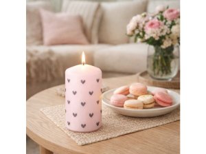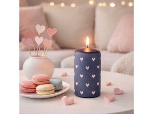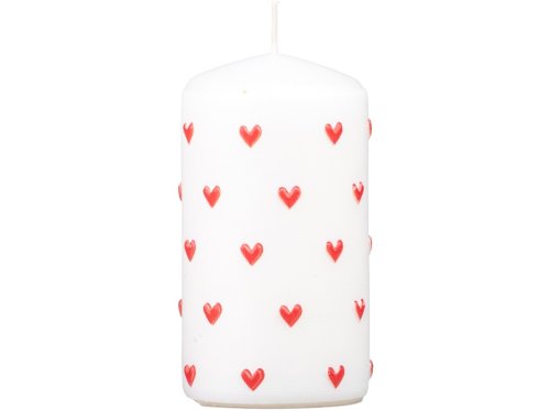 Táto malá sviečka v tvare valca so srdiečkami vytvorí romantickú atmosféru vo vašom domove. Jej rozmery sú 60x110 mm. Tovar je dodávaný v mixe. Doručovaný tovar je vyberaný náhodne a nie je možné vybrať konkrétne prevedenie.