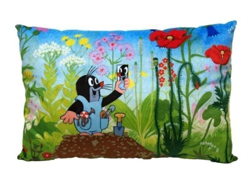 Mäkučký vankúšik s motívom obľúbeného Krtka, vhodný do postieľky, na cesty aj ako dekorácia do izbičky. Materiál mikrovelúr, obrázok tlač, náplň duté vlákno. Zadná strana zelená.br brPranie na 30°C, 100% polyester. Vyrobené ručne v Č R.br brPre deti bez obmedzenia veku.