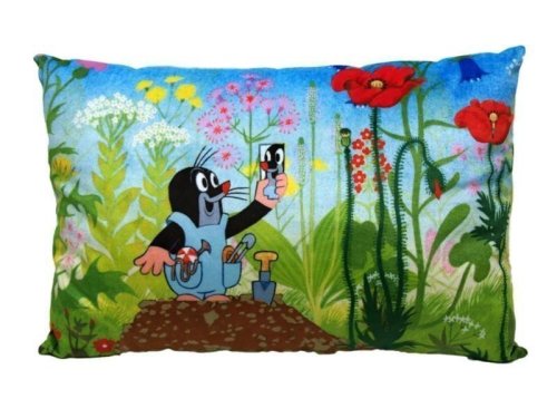 Mäkučký vankúšik s motívom obľúbeného Krtka, vhodný do postieľky, na cesty aj ako dekorácia do izbičky. Materiál mikrovelúr, obrázok tlač, náplň duté vlákno. Zadná strana zelená.<br><br> Pranie na 30°C, 100% polyester. Vyrobené ručne v Č R.<br> ; <br> Pre deti bez obmedzenia veku.