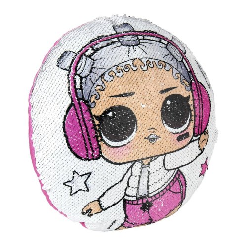 Flitrový vankúšik preklápací s bábikou LOL v dvoch prevedeniach.