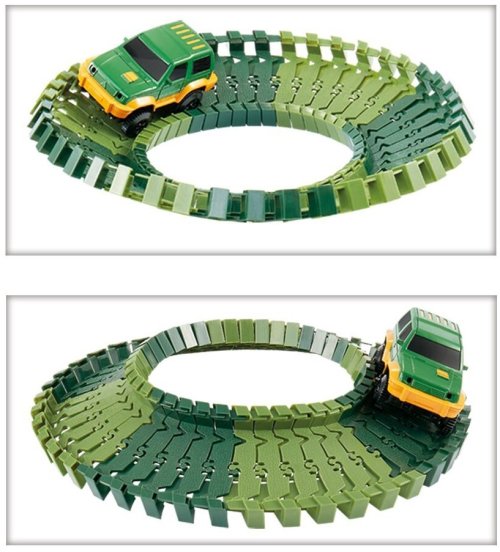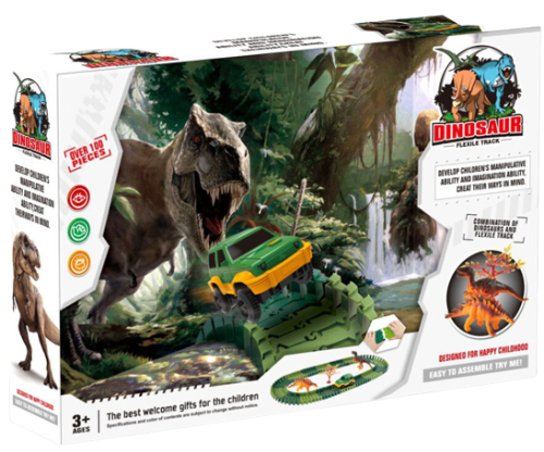 Balenie obsahuje: variabilne zostaviteľnú dráhu, 3 praveké zvieratá, strom, svietiace autíčko 9,5 × 5,5 cm. Prevádzka autíčka na 2 × 1,5 AA batérie - nie sú súčasťou balenia.