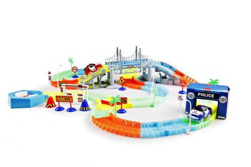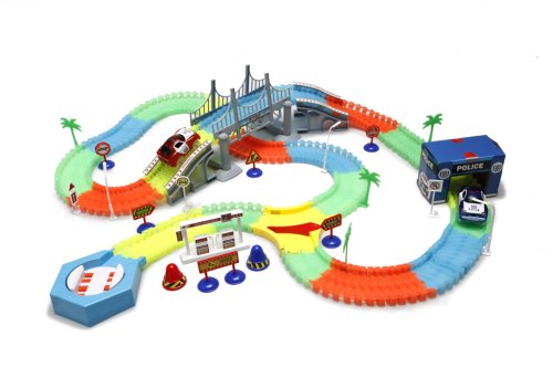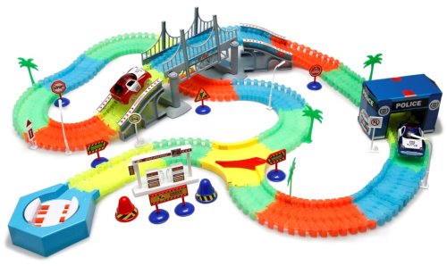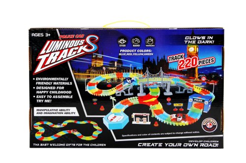Variabilná dráha svietiaca v tme s 220 dielmi ponúka nekonečné možnosti pre kreatívnu stavbu a zábavu! Sada obsahuje jedno autíčko s LED svetlom, ktoré sa rozsvieti pri jazde, a ďalšie skvelé doplnky, ako je premostenie, policajná stanica, benzínová pumpa a ďalšie. Dráhu je možné jednoducho zostaviť a prispôsobiť podľa vlastných predstáv. Prevádzka sady vyžaduje 2×1,5V AA batérie (nie je súčasťou balenia). K dispozícii sú dve varianty autíčok – červené alebo modré. Skvelá voľba pre deti, ktoré milujú akčné hry a svetlá!