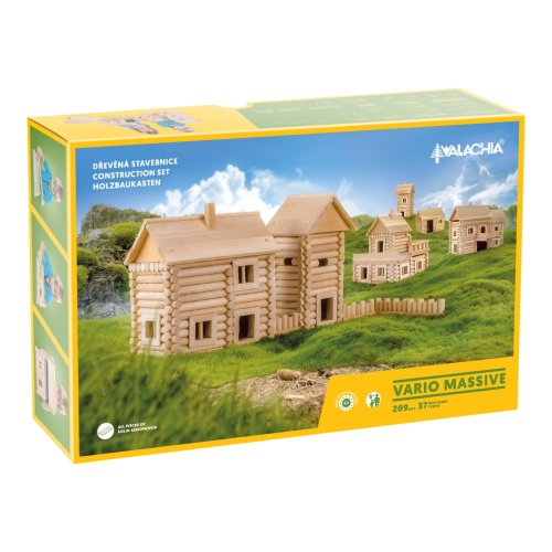 Vario Massive 209 dielikov drevená stavebnica Walachia. Klasická drevená česká stavebnica od Walachie z ktorej zložíte minimálne 37 typov stavieb. Veľkou výhodou všetkých VARIO stavebníc je ich vzájomná kombinovateľnosť, takže v spojení so stavebnicou VARIO a VARIO XL je možné postaviť skutočne monumentálne stavby podľa vlastnej fantázie. Stavebnica z masívneho bukového dreva (priemer 15 mm). Možno ju skladať aj rozkladať. Z tejto stavebnice postavíte mnoho variant stavieb.