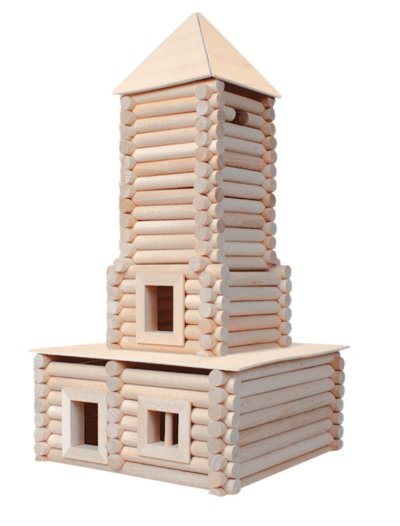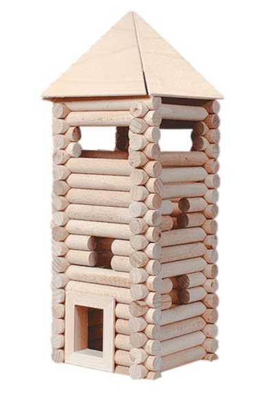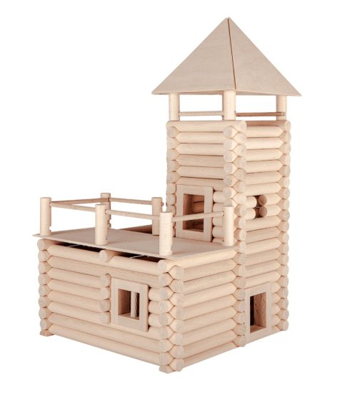 Stavebnica z masívneho bukového dreva ( priem. 15 mm ). Možno ju skladať aj rozkladať. Z tejto stavebnice postavíte mnoho variant stavieb. V stavebniciach WALACHIA® nájdete všetko potrebné na zostavenie. Sú tu uložené drevené hranolky s prierezom 9x9mm daných dĺžok k stavbe zrubových stien, diely na štíty a strechy, kartónové výseky okien a dverí i papierové potlače, plochy štítov, striech, striešok, dverí, okien a dlažieb, fólia praciek okien a brúsny papier na brúsny papier ). Súčasťou stavebnice je podrobný schematický montážny plán. Počet dielov: 184.