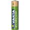 Nabíjacia batéria VARTA Recycled 4 x AAA 800 mAh, Vyrobené z 11% z recyklovaného obsahu, s technológiou "Ready To Use" - prednabité pre okamžité použitie, Veľmi nízke samovybíjanie - udrží až 70% kapacity po dobu 12 mesiacov, Napätie 1,2 V