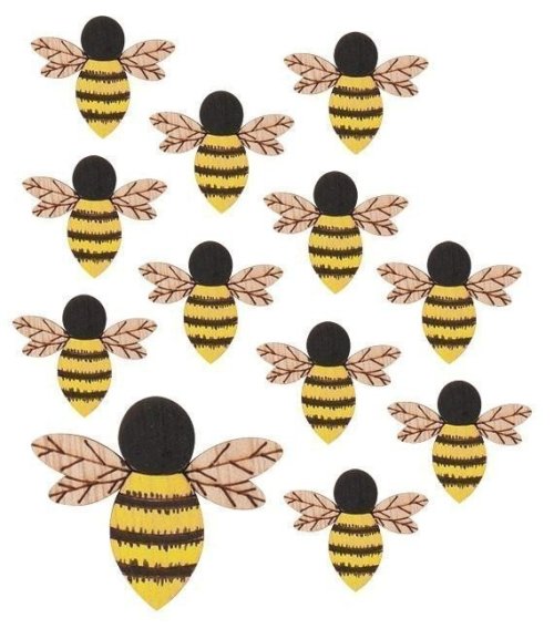 Včela drevená s lepíkom 4 cm, 12 ks v sáčku