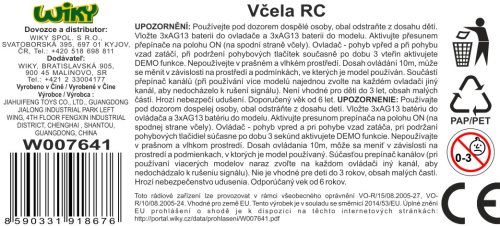 Včela Infračervené diaľkové ovládanie 6 batérií pre diaľkové ovládanie Rozmery včielky: cca. 10 cm x 3,5 cm x 7,5 cm