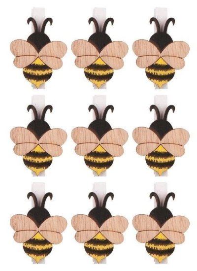 Včielka drevená na kolíčku 4,5 cm, 9 ks v sáčku