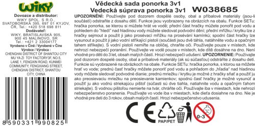 Vedecká sada ponorka 3v1. Rozmery ponorky 20x12,5x16,5 cm. Podvodné okuliare, vodné pištole, sito.