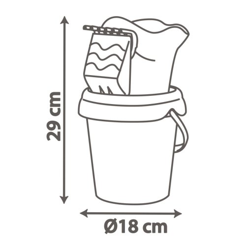 Set na piesok s motívom Minnie. Súčasťou je sitko, hrabličky, lopatka, formička na piesok v tvare srdiečka alebo kvietky a kanvička. Priemer vedierka 18 cm. Výška vedierka s príslušenstvom 29 cm.