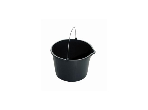 Plastové vedro s lievikom s kovovým držadlom, s objemom 16 l, vhodné na použitie v záhrade alebo na stavbe.