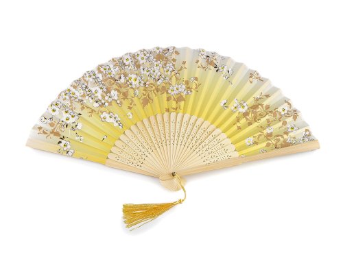 Vejár textilný s metalickými detailmi - žltá svetlá strieborná