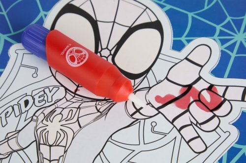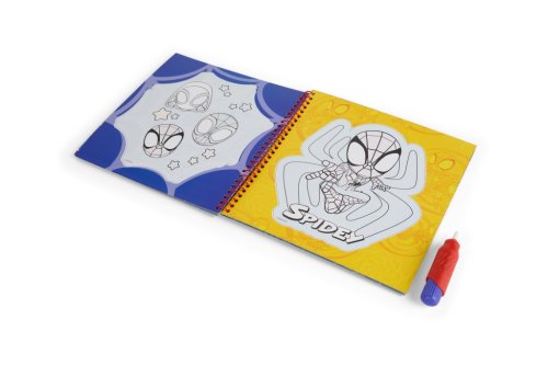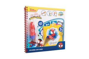 Kúzelná omaľovánková kniha s motívmi Spidey, ktorá funguje na princípe vodného maľovania. Stačí iba naplniť priložený štetec vodou a pretrieť obrázok – farby sa samy objavia a vykúzlia nádhernú ilustráciu. Opakovane použiteľná (po zaschnutí farby opäť zmizne a je možné maľovať znova). Praktický formát 22,5 × 22,5 cm, ideálny na cesty aj domáce tvorenie.