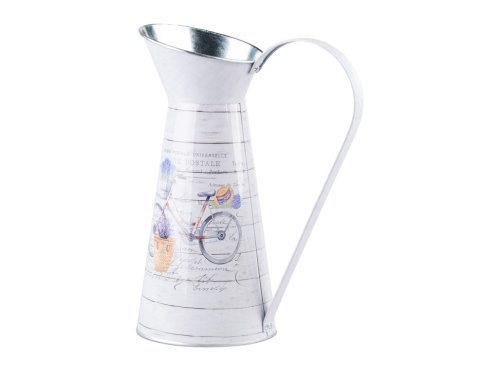 Originálna plechová kanva s motívom bicykla je skvelou dekoráciou pre vašu záhradu alebo kvetinový aranžmán. Tento jedinečný dizajn priťahuje pozornosť a dodá vášmu priestoru veselý a hravý vzhľad. Jej rozmery sú 220x140x300mm.