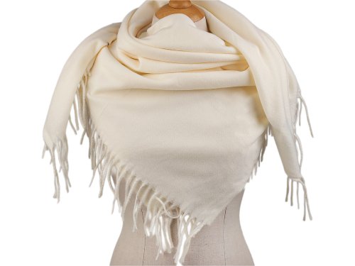 Veľká teplá šatka / pléd so strapcami, jenofarebná, káro 100x105 cm - krémová svetlá