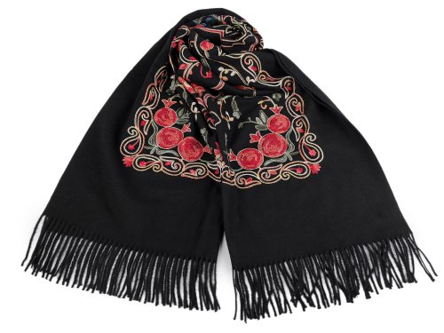 Veľká vlnená šatka typu kašmír je elegantným módnym doplnkom, ktorý zaujme svojou nádhernou výšivkou. Je veľmi kvalitné, komfortne vás zahreje v sychravých dňoch. Je vyrobený z materiálu príjemne hebkého na dotyk. Na koncoch je zakončený dlhými strapcami. Môžete ho nosiť do práce aj do spoločnosti, výšivka má jemný lesk, elegantne dozdobí váš outfit. Upozorňujeme zákazníkov, že zloženie na štítkoch sa môže líšiť, materiál je vlna a polyester.
