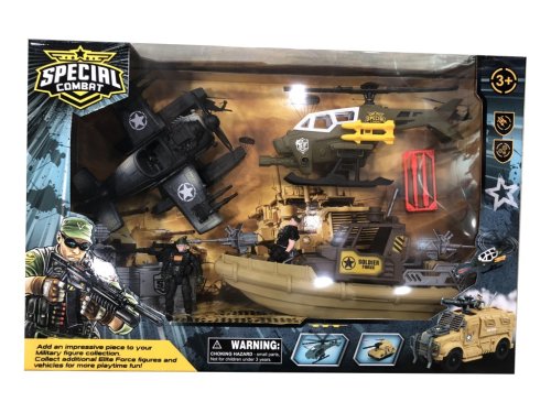 ato veľká vojenská sada obsahuje loď, helikoptéru a dvojplošník, čo umožňuje deťom vytvárať vzrušujúce vojenské scenáre na zemi, mori aj vo vzduchu! Sada zahŕňa figúrky vojakov a množstvo doplnkov, ktoré umožnia realistické a kreatívne hranie. Deti môžu organizovať akčné misie, záchranárske operácie alebo napínavé bitky. Tento set podporuje rozvoj predstavivosti, taktiky a koordinácie, a je ideálny pre všetkých malých fanúšikov vojenských hier a dobrodružstiev!