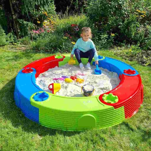 Veľké skladacie pieskovisko je vyrobené z certifikovaného, odolného a kvalitného plastu. Skladá sa zo 6 modulov a netkanej textílie, na ktorej je pieskovisko umiestnené. Jednoduchým spojením šiestich modulov zostavíte pieskovisko a potom ho umiestnite na rovnom povrchu. Môže byť naplnené pieskom, ale môže slúžiť aj ako suchý bazén s loptičkami. Okrem toho je možné do priehlbiny v hornej časti pieskoviska naliať vodu.