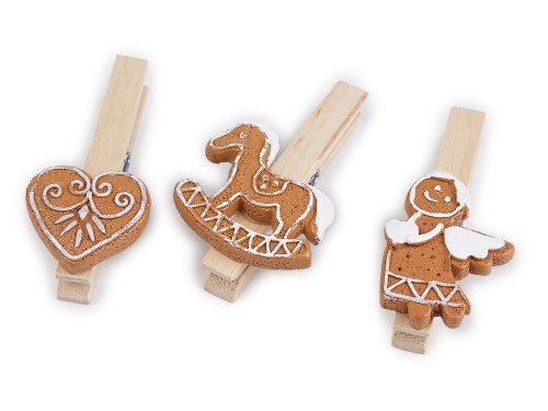 Súprava troch vianočných kolíčkov s motívom perníčkov je vhodná na rôzne dekoratívne účely. Kolíčky štýlovo ozdobia vianočné darčeky, vrecká, tašky alebo kvetináče a kvetinové väzby.