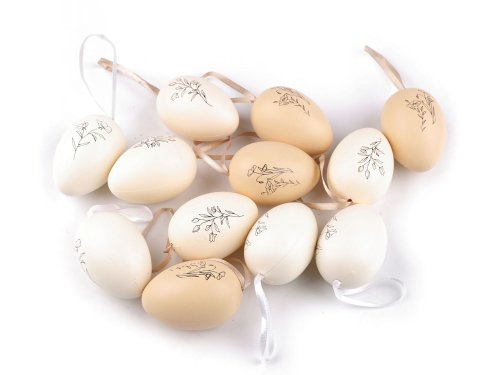 Veľkonočné vajíčka v prírodných farbách vám ozdobia vence, vetvičky vo váze a iné jarné dekorácie a aranžmán. Majú pútko zo saténovej stuhy. Potlač kvetov je obojstranná.