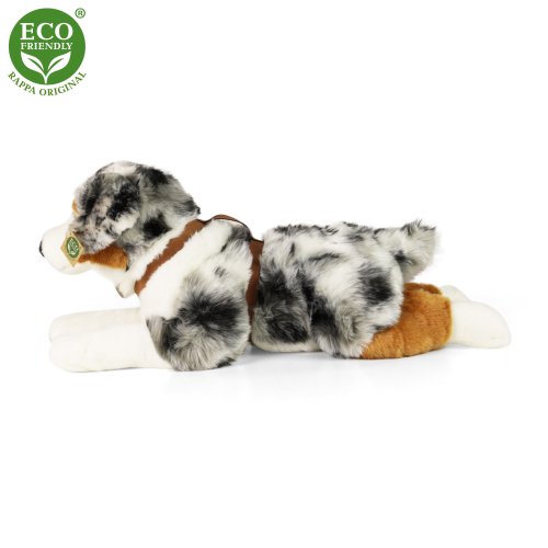 Plyšový pes austrálsky ovčiak ležiaci o veľkosti 61 cm je ručne ušitý z vysoko kvalitného jemného plyšu, a vďaka tomu vyzerá ako živý. Tento plyšový kúsok je ideálnym darčekom pre všetkých milovníkov hebučkých plyšákov. Je súčasťou exkluzívnej kolekcie plyšových hračiek značky RAPPA. Hlavné vlastnosti: realistické zvieratkokoručné spracovanie vysoko kvalitný plyš ECO-FRIENDLY výplň Čo to vlastne ECO-FRIENDLY znamená? Výplň plyšovej hračky je vyrobená z recyklovaných PET fliaš. Tento materiál je úplne bezpečný, na omak nerozoznateľný od štandardnej výplne a plne atestovaný pre bezpečnosť aj tých najmenších. Rozhodli sme sa ísť zelenou cestou čo najmenej zaťažujúcou životné prostredie – cestou ECO-FRIENDLY.