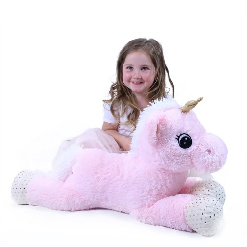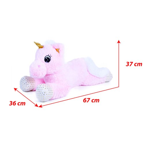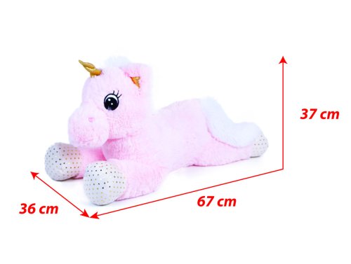 Nádherný plyšový jednorožec vo veľkosti 70 cm je vyrobený z kvalitnej jemnej plyše. Jednorožec je v ružovej farbe, má zlatý roh aj labky, hriva a chvost sú snehovo biele. Ideálny darček pre malých aj veľkých! Vhodné pre deti od 0 rokov.