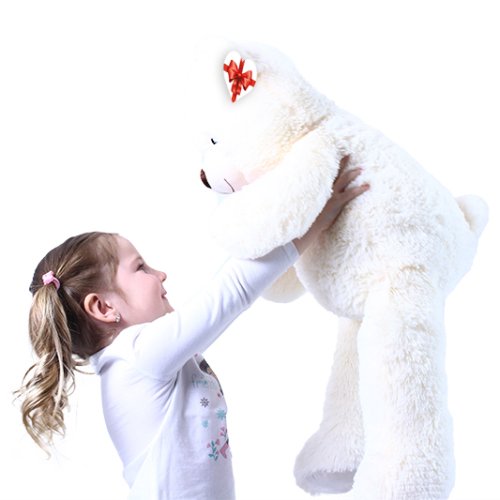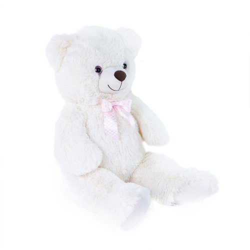Plyšový medveď nesmie chýbať v žiadnej detskej izbičke! Medveď vo veľkosti 78 cm je vyrobený z kvalitnej hebučkej plyšu, má krémovo bielu farbu a krk mu zdobí ružová saténová mašľa. Tento plyšový kúsok je ideálnym darčekom pre malých aj veľkých! Súčasťou je papierová visačka v tvare srdiečka, na ktorú môžete napísať venovanie. Vhodné pre deti od 0 rokov.