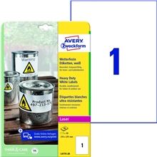 Veľmi odolné etikety Avery, 210 x 297 mm, biele