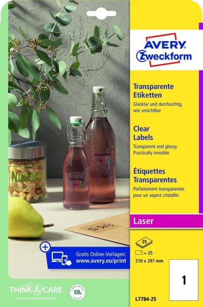 • Veľmi odolné kryštalicky číre polyesterové etikety Avery Zweckform - prvotriedne produkty si žiadajú prvotriedne označenie