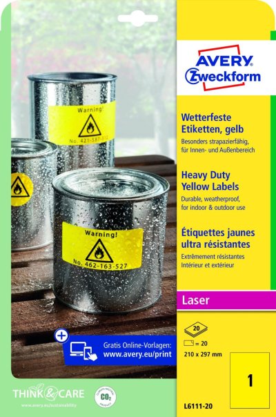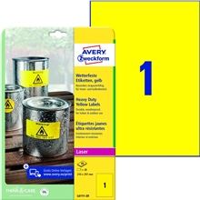Veľmi odolné etikety Avery, 210 x 297 mm, žlté