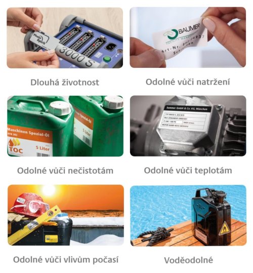 • Veľmi odolné polyesterové etikety do náročných vonkajších podmienok