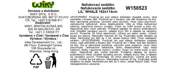 Nafukovacia veľryba s úchytmi pre lepšiu rovnováhu. S veľrybou si užijete množstvo zábavy. Rozmer 152x114 cm. Vhodné od 3 rokov.