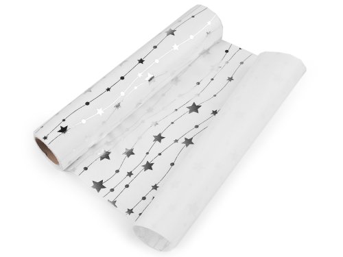 Velvet / zamat zdobia metalické hviezdičky. Pôsobí naozaj luxusným dojmom, nemal by chýbať na žiadnej party. Okraje materiálu sa po odstrihnutí nestrapkajú a nie je nutné ich začisťovať olemovaním.