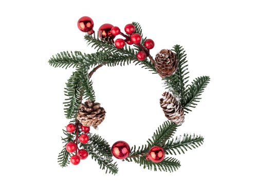 Veniec 240 mm so šiškami a guľôčkami na zavesenie, červená, hnedá, zelená