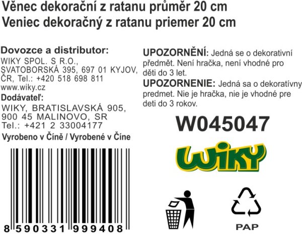 Veniec dekoračný z ratanu s priemerom 20 cm.