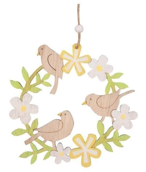 Veniec drevený s vtáčikmi na zavesenie 15 cm